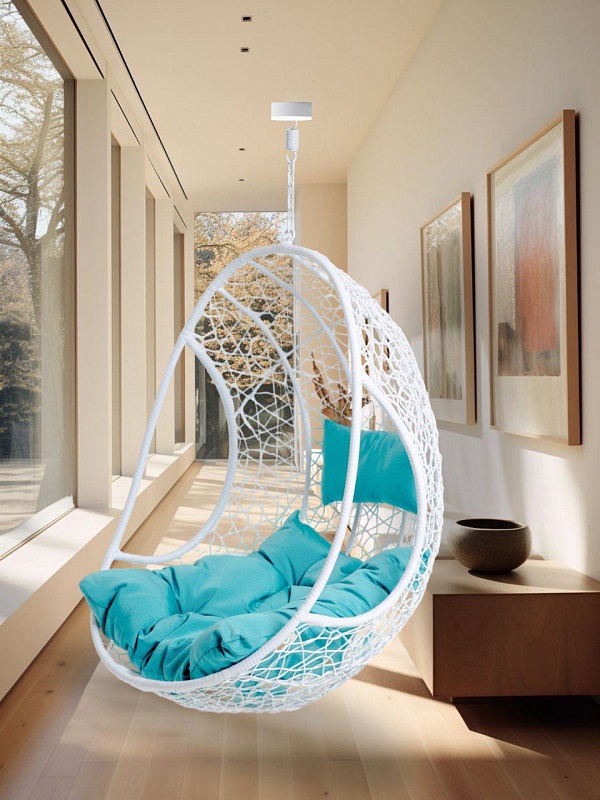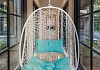 Чаша кресла 44-004-10/1, Цвет белый + бирюзовая подушка, Уцененный товар. Каркас металл, плетение - искусственный ротанг. Отсутствует металлическое основание и опора. Чаша в хорошем состоянии. Подушка (ткань саржа, наполнитель синтепон) в комплекте. Размер: ширина 90см, высота 120см, глубина 70см. Страна производства Китай.