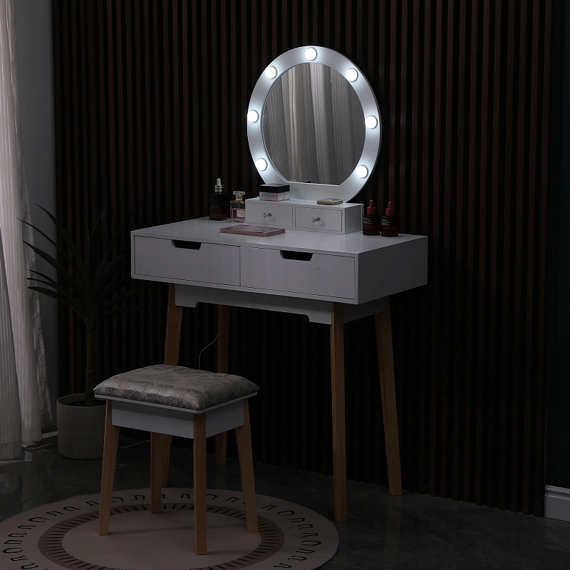 Столик туалетный Vinotti DT-015/1 с зеркалом, уцененный, с пуфом